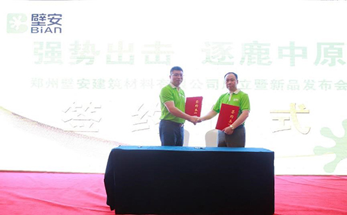 东方腾博888诚信为本官方网站民建公司副总司理熊卫锋先生为大会致辞,,,,,他体现,,,,,依附东方腾博888诚信为本官方网站的优质产品服务,,,,,立异创客模式,,,,,壁安品牌生长远景重大。。。。。。民建公司壁安粘合剂事业部总司理陈明先生向在场嘉宾叙述了壁安品牌的由来及其战略妄想,,,,,“信托创客,,,,,深度分享;;;;;;信托相助,,,,,周全赋能”是壁安平台给与相助同伴的允许与希冀。。。。。。随后,,,,,陈明先生代表壁安品牌与郑州壁安修建质料有限公司董事长张万祥先生现场签约,,,,,告竣战略相助协议。。。。。。