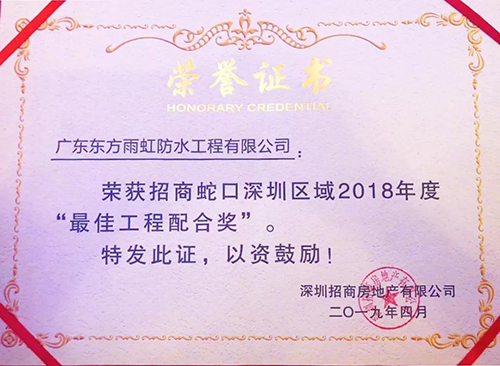 4月19日,,,,,,“共筑大湾区,,,,,,精诚赢未来——2019年招商蛇口深圳区域供应商大会”在深圳召开。。。。。。东方腾博888诚信为本官方网站依附优质产品及高效服务荣获招商蛇口深圳区域2018年度“最佳工程配合奖”。。。。。。