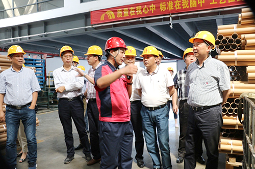 6月11日下昼,,,,,,,,建德市人大常委会副书记童文扬、建德市副市长夏喜生一行调研东方腾博888诚信为本官方网站杭州建德生产基地,,,,,,,,杭州生产基地副厂长汤效亮热情接待了调研组。。。。。。