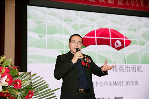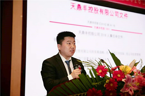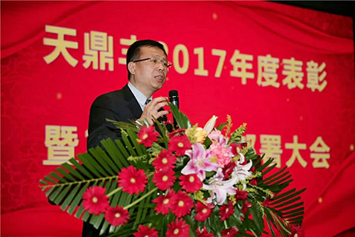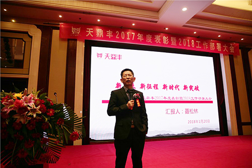 天鼎丰董事长兼总司理聂松林作“新未来·新征程·新时代·新突破”主题报告,,,,,,他对天鼎丰公司2017年生产治理、市场销售、人力资源、综合治理等事情举行了总结汇报,,,,,,并对2018年岁情作出安排。。。。。。