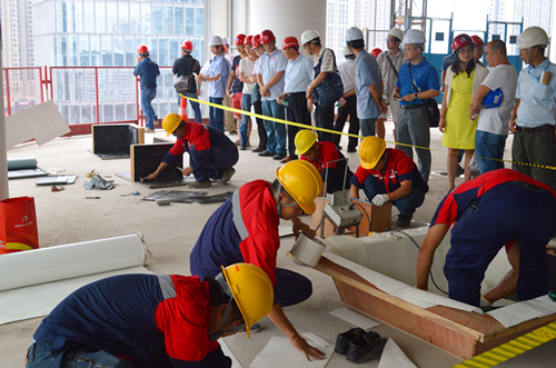为推动广州市修建施工质量清静水平进一步提高,,,,,,,,鼓舞宽大修建企业开展建设工程质量清静生产事情的起劲性,,,,,,,,广州市住房和城乡修建委员会对2016年度“清静月”“质量月”现场观摩会运动中起到树模工地作用的企业,,,,,,,,予以诚信加分并表扬。。。。。。。。广东东方腾博888诚信为本官方网站脱颖而出,,,,,,,,成为受表扬企业。。。。。。。。 据悉,,,,,,,,2016年9月,,,,,,,,由广州市住房和城乡建设委员会、广州市建设工程质量监视站主理的质量月现场观摩会防水分场系广东东方腾博888诚信为本官方网站承办,,,,,,,,各区住建局、各级质监站、总包单位、施工单位、监理单位等约400人加入现场观摩运动。。。。。。。。此前,,,,,,,,双方已乐成相助体例《广州市修建防水工程常见质量问题避免指南》,,,,,,,,并相助拍摄广州市修建工程防水施工工艺和渗漏问题防治视频。。。。。。。。