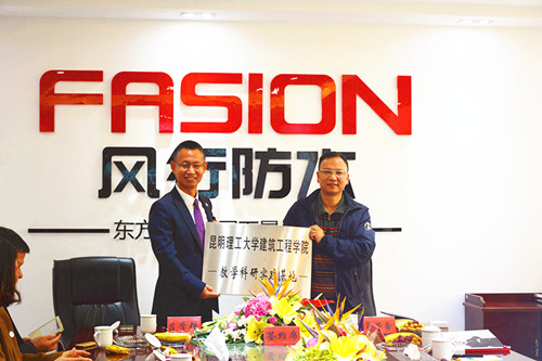 12月15日下昼,,,,,,盛行防水与昆明理工大学修建工程学院相助签约仪式在盛行防水安定生产基地举行。。。。。。。昆明理工大学修建工程学院院长郭荣鑫、院党委书记马应良、副院长王志浩、院党委副书记戴炜、办公室主任王薇等有关向导出席签约仪式。。。。。。。