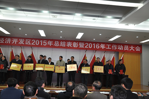 3月10日上午9点,,,,,,江苏省新沂市开发区管委会召开2015年岁情总结暨2016年岁情发动大会。。。。。。。东方腾博888诚信为本官方网站徐州生产基地在会上被授予新沂市“特殊孝顺奖”。。。。。。。