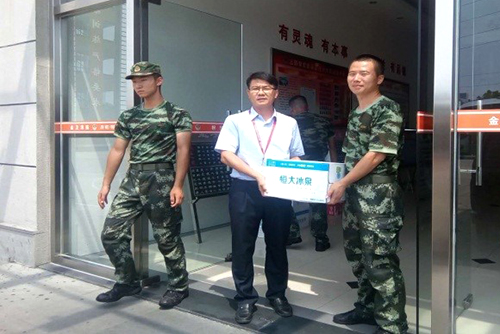 7月25日上午,,,,,,,东方腾博888诚信为本官方网站上海生产基地厂长胡国雄、安环主任陈涛等为金山区消防官兵送去了防暑降温品,,,,,,,向消防战士表达了慰问和敬仰之情。。。。。。。