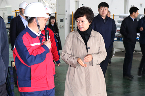 4月22日上午,,,,,,,黑龙江省林口县县委书记吴庆兰、县委副书记于慈森等一行旅行调研东方腾博888诚信为本官方网站青岛莱西生产基地,,,,,,,莱西市委办主任战洪贤、副市长江联军、莱西市望城街道相关认真人陪同旅行。。。。。。。。青岛生产基地厂长阳文新热情接待了调研团。。。。。。。。