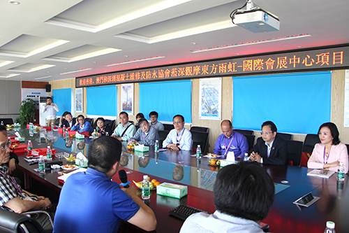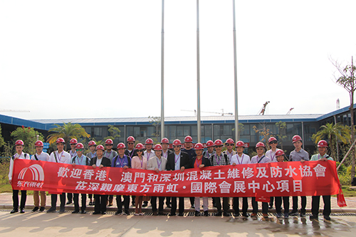 4月11日下昼,,,,,,香港、澳门和深圳混凝土维修及防水协会一行30余位专家观摩东方腾博888诚信为本官方网站国际会展中心项目,,,,,,深圳东方腾博888诚信为本官方网站副总司理卢了君热情接待了观摩团。。。。。。
