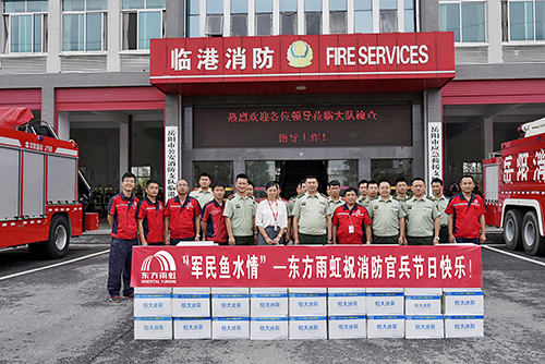 8月1日,,,,,在第90个建军节来临之时,,,,,岳阳东方腾博888诚信为本官方网站厂长助理陈桂福、王秀梅等一行人,,,,,前往岳阳市公安消防支队临港中队慰问消防官兵,,,,,为他们送上了慰问品并致以节日的祝福。。。。。。。。
