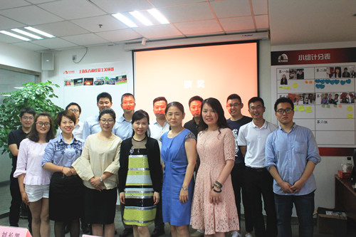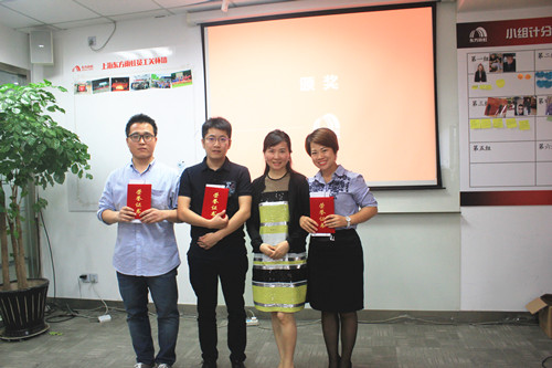 上海公司董事长兼总司理李建华为前三名颁奖(从左至右:王政 林龙飞 李建华 陈林)