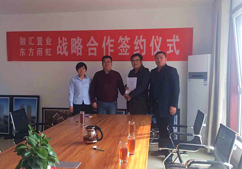 克日,,,,,,,山东滨州市融汇置业有限公司与东方腾博888诚信为本官方网站告竣战略相助,,,,,,,签约仪式在融汇置业总部聚会室举行,,,,,,,融汇置业总司理穆新春、总司理助理李宏明,,,,,,,东方腾博888诚信为本官方网站工程渠道事业部鲁北省总邵珠虎出席了签约仪式。。。。。。。