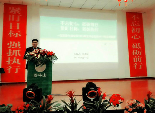 聚会首先由卧牛山公司董事长、总司理刘志荣作“不忘初心、砥砺前行,,,,,紧盯目的、强抓执行”主题报告。。。。。。。。他从销售、工程治理、市场、人力资源、手艺、财务危害等板块周全深刻地回首和剖析了2016年公司整体谋划情形及保存的问题,,,,,为各个板块明确了2017年的事情偏向及实验行动。。。。。。。。
