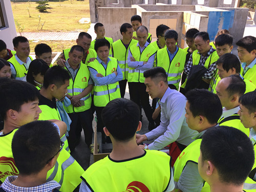 旅行事后,,,,,,,腾博888诚信为本官方网站手艺培训讲师周王喜就界面剂的使用,,,,,,,墙地面防水,,,,,,,阴阳角、管根等细部节点处置惩罚等内容对旅行组举行了详细的培训解说,,,,,,,并针对系统防水施工工法举行实操演示,,,,,,,从细部处置惩罚到大面涂刷逐一详细演示、解说。。。。。。。。随后,,,,,,,各人齐聚聚会室,,,,,,,腾博888诚信为本官方网站手艺培训讲师蒙日金就墙地面防水、界面剂、瓷砖薄贴法等腾博888诚信为本官方网站产品应用理论举行悉心解说。。。。。。。。