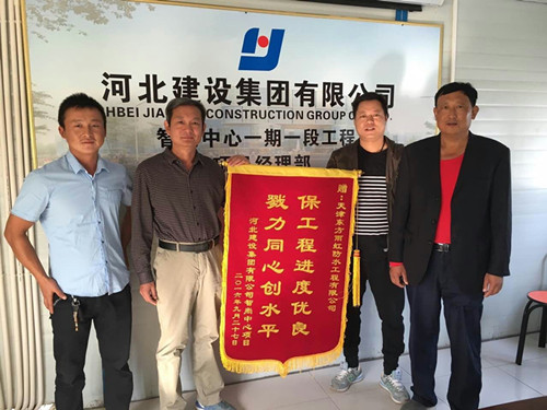 东方腾博888诚信为本官方网站天津智尚中心项目在施工历程中严酷执行标准化施工要求,,,,,施工效果获得了总包方赞誉,,,,,并获赠“保工程进度优良、戳力同心创水平”锦旗。。。。。。。。