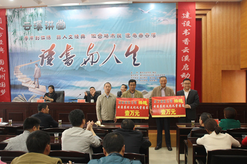 4月27日,,,,,岳阳市云溪区“云溪课堂”专题讲座在区委常委、组织部长、统战部长杜宇和区委常委、宣传部长胡蝶的主持下盛大举行。。。。。。。岳阳东方腾博888诚信为本官方网站受邀加入并向云溪区农村文化礼堂捐赠一万元购书基金。。。。。。。 岳阳东方腾博888诚信为本官方网站副厂长闫潇彬作为参会企业代表讲话,,,,,谢谢云溪区对东方腾博888诚信为本官方网站生长的支持,,,,,也郑重体现,,,,,公司将一如既往地投身于公益事业,,,,,加速融入外地文化,,,,,实现与外地人文、经济的共荣共赢。。。。。。。 东方腾博888诚信为本官方网站捐赠购书基金,,,,,意在为外地黎民提供优异的学习气氛,,,,,贯彻“全民念书”的理念,,,,,勉励各人勤于念书,,,,,用新知识富厚自己,,,,,在提高自身文化素质的同时,,,,,富厚精神文化生涯,,,,,配合推进社会主义新农村建设。。。。。。。