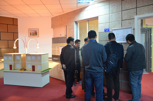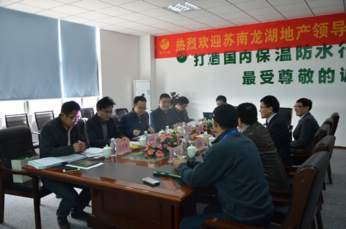 2016年3月16日,,,,,,,,龙湖集团苏南公司工程部总监胡雄伟、招标中心认真人王德伦、工程治理中心认真人黄卫军、工程中心土建司理王学建、研发司理孔蒙一行五人旅行江苏卧牛山公司,,,,,,,,对卧牛山公司的修建保温手艺水平及在施工项目举行旅行考察。。。。。。江苏卧牛山公司董事长、总司理刘志荣、总工程师花海东、副总司理刘和军、副总司理张建新、副总工程师成时亮认真接待并陪同考察。。。。。。 上午10点,,,,,,,,苏南龙湖地产相关向导一行旅行公司之后,,,,,,,,前往手艺中心展厅对公司的手艺水平做更深一步的相识。。。。。。手艺展厅的考察包括旅行保温主材样板、施工样板、外墙涂料样板以及修建保温系统展示墙等,,,,,,,,卧牛山公司总工程师花海东向龙湖地产相关向导周全先容了修建保温多种系统解决计划。。。。。。