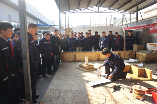 下昼,,,,,《单程防水卷材屋面工程手艺规程》及《TPO事业部施工流程梳理及质料治理》的宣贯,,,,,让与会职员明确掌握了工程手艺及施工历程中的规章制度,,,,,项目司理组和工人代表组也就项目治理的履历与施工手艺作了分享,,,,,新同事们如获至宝,,,,,现场提问、讨论同步举行。。。。。。。 。   颁奖环节,,,,,现场为TPO事业部优异项目司理王海东、崔岩,,,,,优异施工班组张广志,,,,,优异施工员李冰,,,,,优异新人钟鱼,,,,,优异施工队长高明坤等人揭晓奖励及证书。。。。。。。 。   本次培训还组织TPO细部节点实操大赛,,,,,由2015中国屋面防水巨匠徐龙潇现场演示阴阳角和管根的标准化施工实操及解说。。。。。。。 。TPO事业部的所有施工治理职员及班组组长全神贯注寓目,,,,,字斟句酌的施工工法引来阵阵赞叹。。。。。。。 。