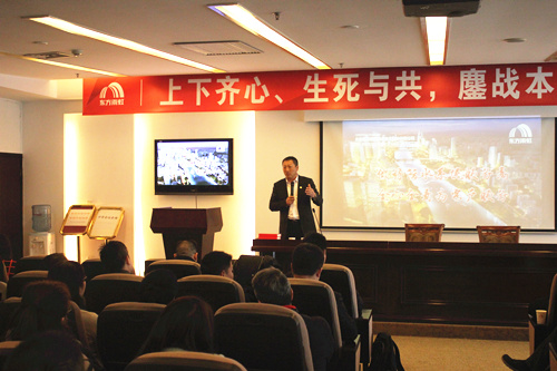 东方腾博888诚信为本官方网站防水集团总裁刘斌先生为营业系统授课