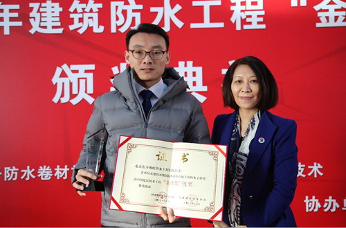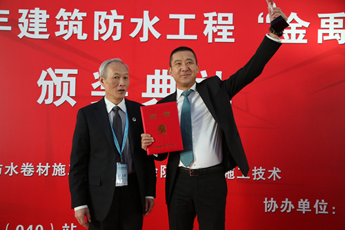 东方腾博888诚信为本官方网站TPO单层屋面事业部总司理王宏代表公司领取“金禹奖”金奖