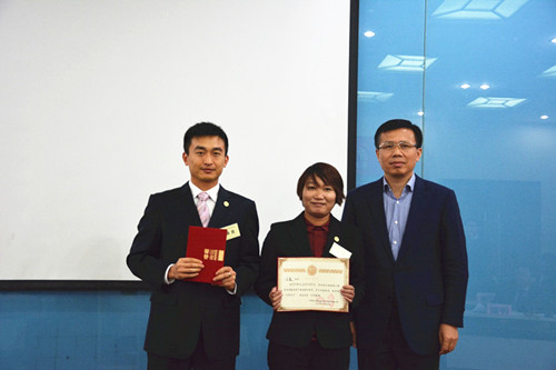 东方腾博888诚信为本官方网站总裁向锦明为本届优异学员单良、于霞揭晓证书